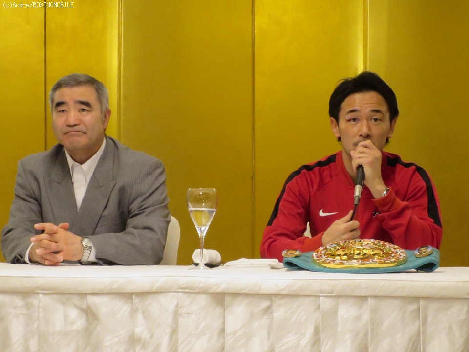 会見の冒頭、帝拳ジムの浜田剛史代表は「昨日、ヒヤッとした試合ではありましたけど、今までの経験、持っている冷静さ、全部出た試合だったように思います。何より、相手がウェイトを上げてきていることで予想以上なパワーアップがあった。良い試合になったと思います」と昨夜の試合を総括した。