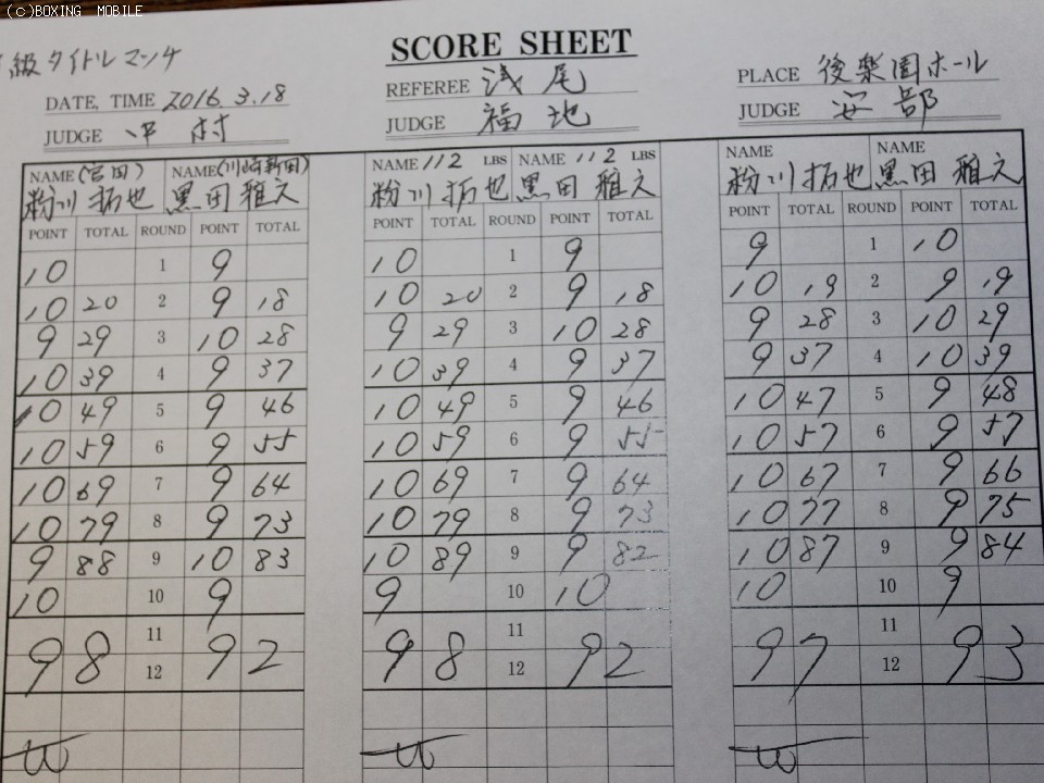 一方、敗れた黒田は「粉川選手は決して調子が良いとは感じなかったが上手くかわされた」と悔しい表情。「心身ともに自分の甘さが出たがまだまだこんなものじゃないはず。来週から練習をはじめ出直します」と早くも再起の意向を示した。