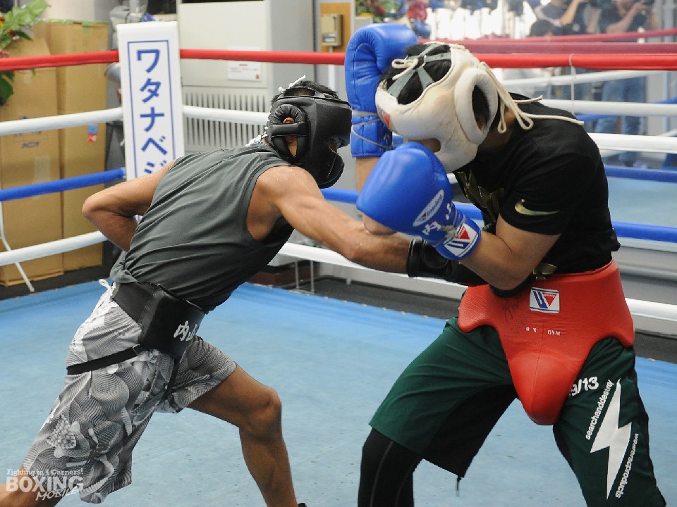 内山のパートナーとしてこれまで26ラウンドのスパーリングを行ったという山元は、「内山さんは年齢を重ねたが以前と全く変わらない。詰め方も相変わらず上手いし、パンチを外しての右にはちょっと対応できない。サウスポーの苦手意識は全くないですね」と脅威の36歳に感嘆。この日も軽めのスパーながら2度ばかり効いてしまったともらした。