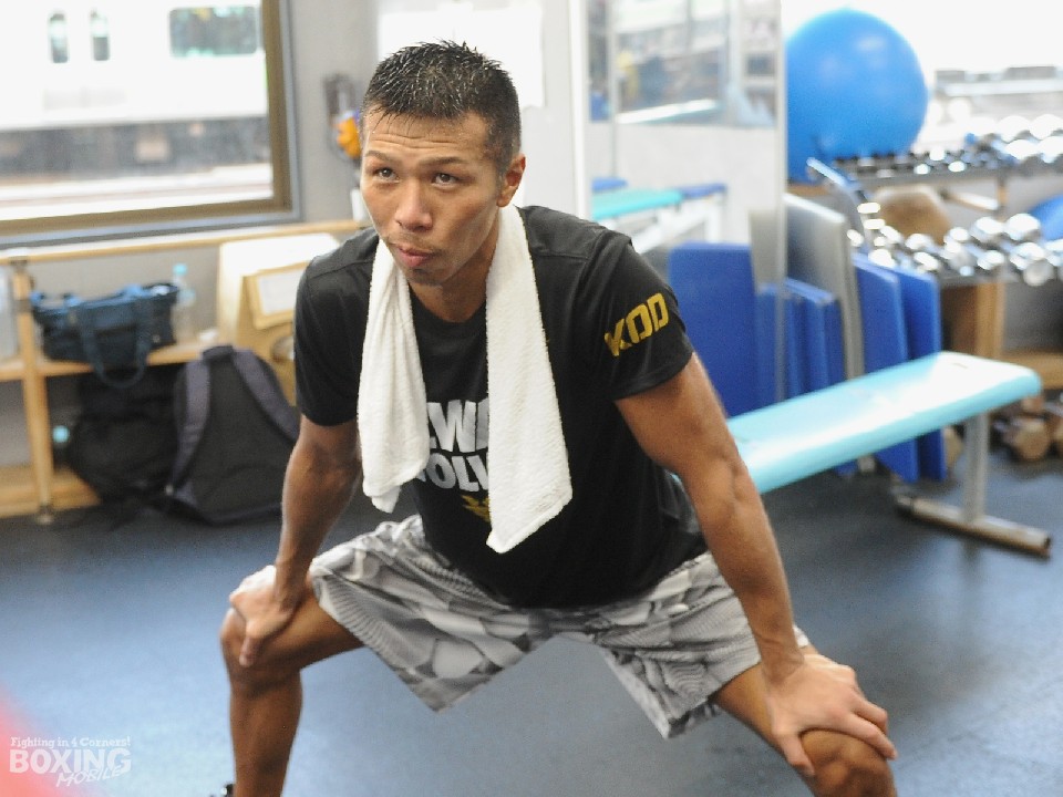 続けて「焦らずにいつも通りジャブをついてジワジワと削っていきたい。チャンスがあればもちろん狙うが、判定でもKOでも全く寄せつけず、隙のない試合をしたい」と自信を示し、内山本来の相手にとってやりずらいボクシングでの完勝を誓った。