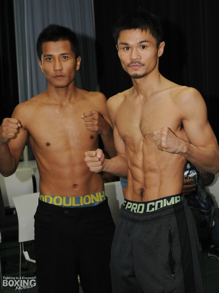 1年4ヶ月ぶりに日本のリングに立つスーパーフライ級王者の河野公平(35=ワタナベ)はリミットの52.1kg、挑戦者の同級7位インタノン・シッチャモアン(29=タイ)は200gアンダーとそれぞれ問題なく一発でパスした。