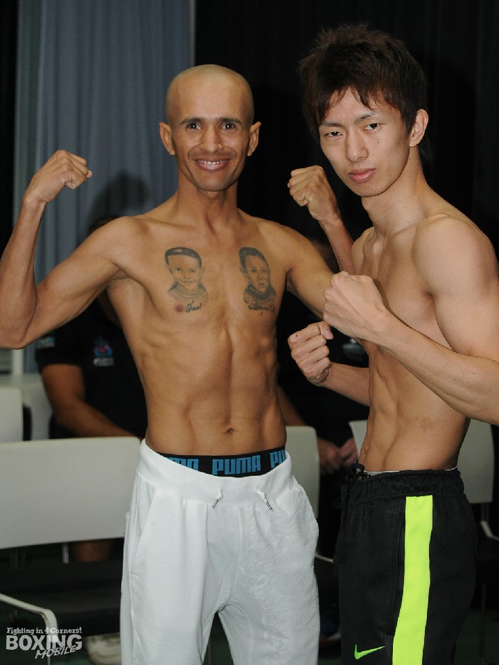12度目の防衛に臨むスーパーフェザー級スーパー王者の内山高志(36=ワタナベ)は58.8kgでクリアしたのに対し、暫定王者ジャスラエル・コラレス(24=パナマ)は400gオーバーの59.3kg。内山を含め関係者をヒヤッとさせたが、2時間後の再計量をリミットの58.9kgで無事パスした。