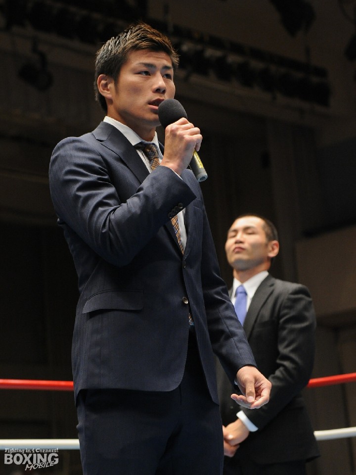 4月17日に指名挑戦者の麻生興一(29=三迫)に7回TKO勝ちで4度目の防衛に成功、敢闘賞を受賞した岡田は「表彰式の日にちを違えてしまってこんな姿で来てしまった。次に表彰されることがあったらビシッと決めて参加したいと思います。関係者の方々、すみませんでした」 と慌てて会場入りしたためにラフな格好で表彰式に参加したことを詫びるコメントに終始した。