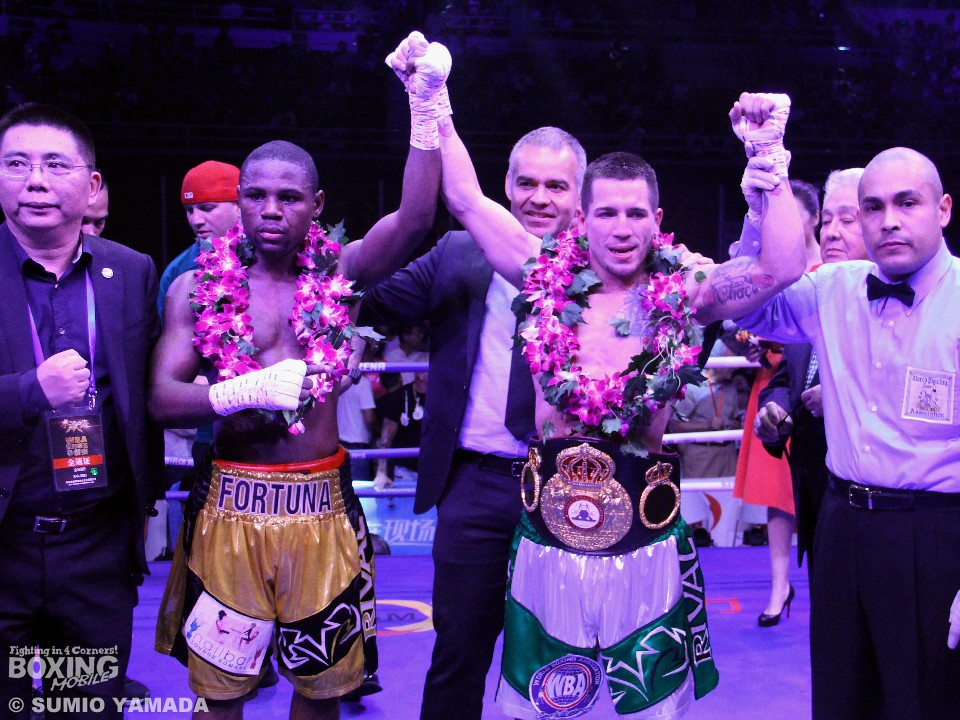 WBAスーパーフェザー級タイトルマッチ、レギュラー王者ハビエル・フォルトゥナ(26=ドミニカ共和国/米)対同級8位ジェイソン・ソーサ(28=米)と、WBA世界スーパーバンタム級レギュラー王座決定戦、2位のクー・シャオジュン(25=中国)対8位のネオマール・セルメニョ(36=ベネズエラ)のダブル世界戦が24日、中国の北京で行われた。