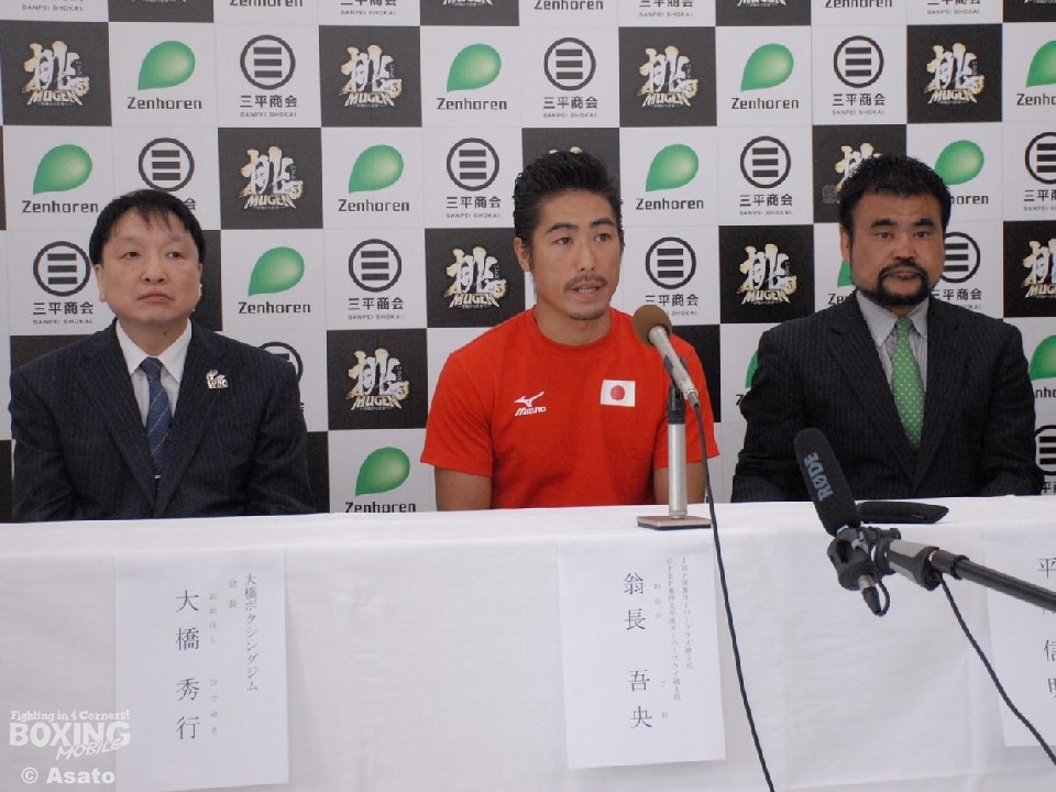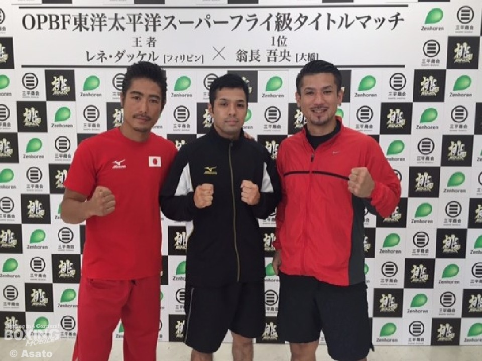 8月21日(日)、沖縄県立武道館で開催されるOPBF東洋太平洋スーパーフライ級タイトルマッチ、王者レネ・ダッケル(24=比国)に挑戦する同級1位翁長吾央(36=大橋)の発表会見が19日、沖縄県豊見城市平仲ボクシングボクシングスクールで行われた。