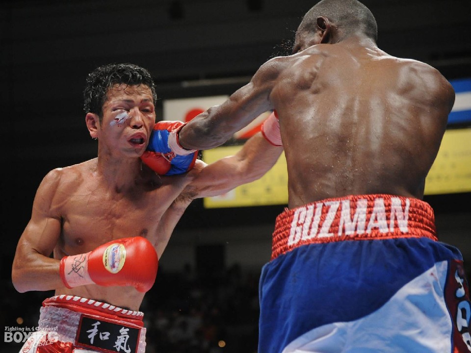 (27=ドミニカ共和国)のラフファイトに巻き込まれ、バッティングにより右頬を負傷。直後の攻撃で膝を落としてしまい、不運にもこれがダウンと判断された。これで早い回で主導権を握る青写真が崩れた和氣は、21戦21KO無敗と脅威のKO率を誇るグスマンの圧力と手数に押され、前半までに4度のダウンを喫した。