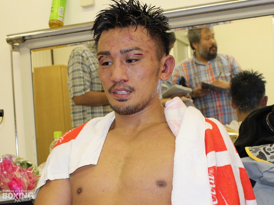 両目上をカットした姿で会見に臨んだ高山は「ポイントを取られているのはわかっていたが前に出れなかった。ひどいボクシングをしてしまった」と唇を噛んだ。「耳の裏にパンチをもらい集中力が切れてしまったが、何を言っても言い訳になる。相手の方が強かった。せっかくチャンスを作ってくれたのに結果を出すことができなくてすみませんでした」と言うと涙でタオルを濡らした。