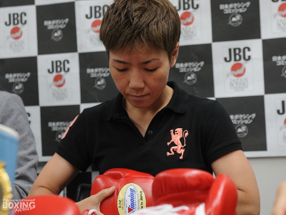 調印式、グローブチェック後の質疑応答で、いつも通り万全の仕上がりと切り出した王者の柴田は、再戦について「決着をつけるチャンス!やってきたことをしっかりと出して白黒つける。オリンピック日本代表の目覚しい活躍に刺激を受けている。私も日本魂を見せたい」と意気込んだ。