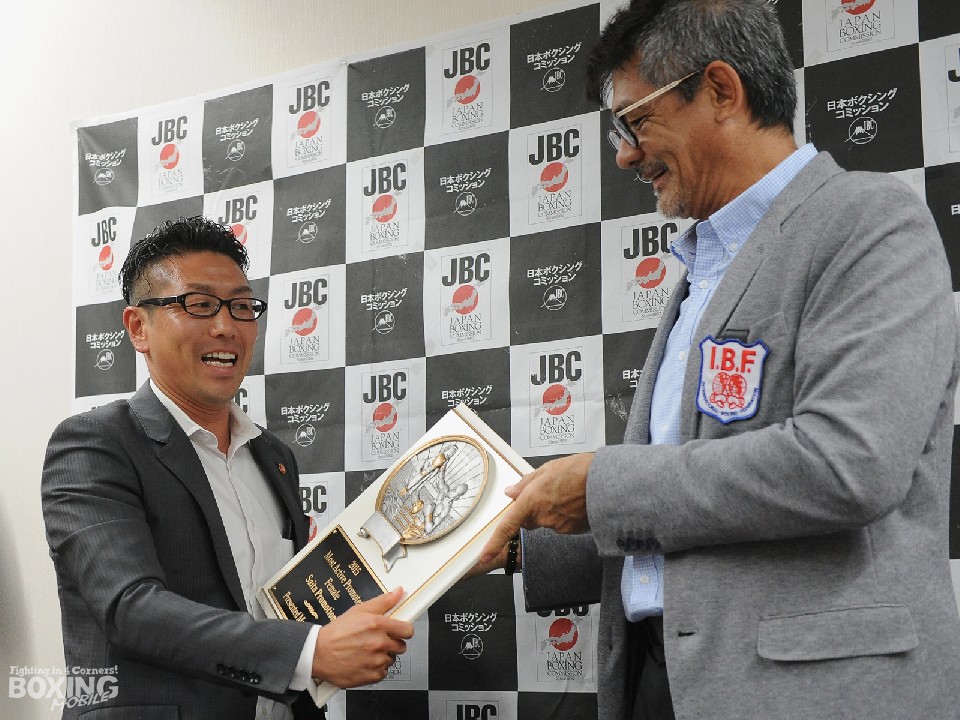 会見終了後、5度の世界戦をプロモートしたワールドスポーツジム斎田竜也会長の功績を称え、IBFより最優秀プロモーター賞の盾が贈られた。