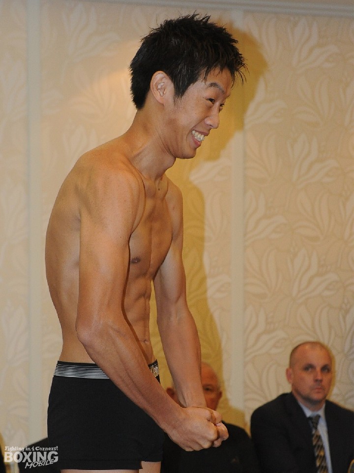 セミファイナル、58.0kg契約6回戦で韓国フェザー級王者イ・インギュ(24)と拳を交える清水はリミットちょうどの58.0kg、これが初来日となるイは200gアンダーの57.8kgでともに一発クリアした。多くの報道陣が見つめる、計量後にポージングを取って会場を盛り上げた清水だったが「まだ全然、計量の雰囲気に慣れないですね」と苦笑い。「スープを飲んでこれから元気を出します」と短めのコメントを口にし会場を後にした。