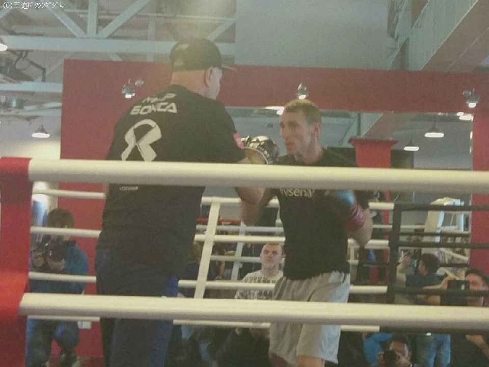 この日は王者エドゥアルド・トロヤノフスキー(36=ロシア)も同じくミット打ちを披露。2度目の防衛戦に向け、小原同様に順調な調整をアピールした。
