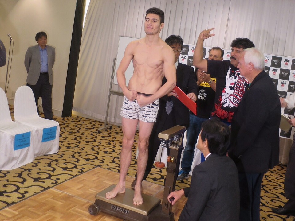 長谷川穂積(真正)が集大成で挑む最後の戦い。WBC世界スーパーバンタム級タイトルマッチの前日計量が15日、大阪市内のホテルで行われた。WBC世界王者の証、緑のベルトを持ってメキシコから来日したチャンピオンのウーゴ・ルイスは今回が2度目の大阪入りとなる。