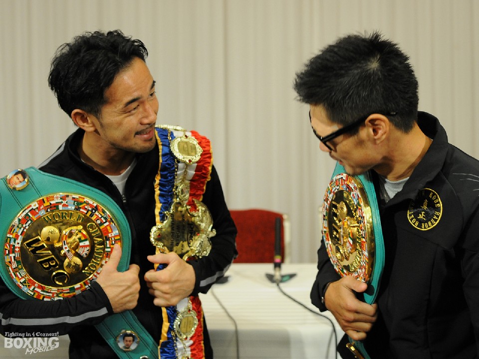 捨て身の反撃から壮絶な打ち合いを制した長谷川は、試合後に左拳を一ヶ月半前に負傷していたことを明かした。同じリングで11度目の防衛に成功したWBC世界バンタム級王者の山中慎介(33=帝拳)と会見場に姿を現した長谷川には、「勝てたことが一番。ホッとしている」と重圧から開放された安堵感がにじみ出ていた。続けて昨夜は家でゆっくりできたと話し、チャンピオンになった実感はまだないが街で「チャンピオン!」と声を掛けられれば少しは感じるのかなと笑顔も見せた。
