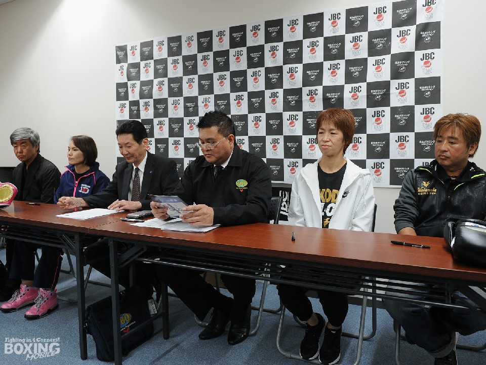 明日21日、後楽園ホールで開催されるWBO女子世界ミニフライ級タイトルマッチ、王者の池原シーサー久美子(31=フュチュール)対元東洋太平洋女子フライ級王者の江畑佳代子(40=ワタナベ)の調印式と前日計量が都内の日本ボクシングコミッション事務局で行われた。両者は昨年5月に対戦し、この時は2-1の負傷判定で池原が辛勝した。