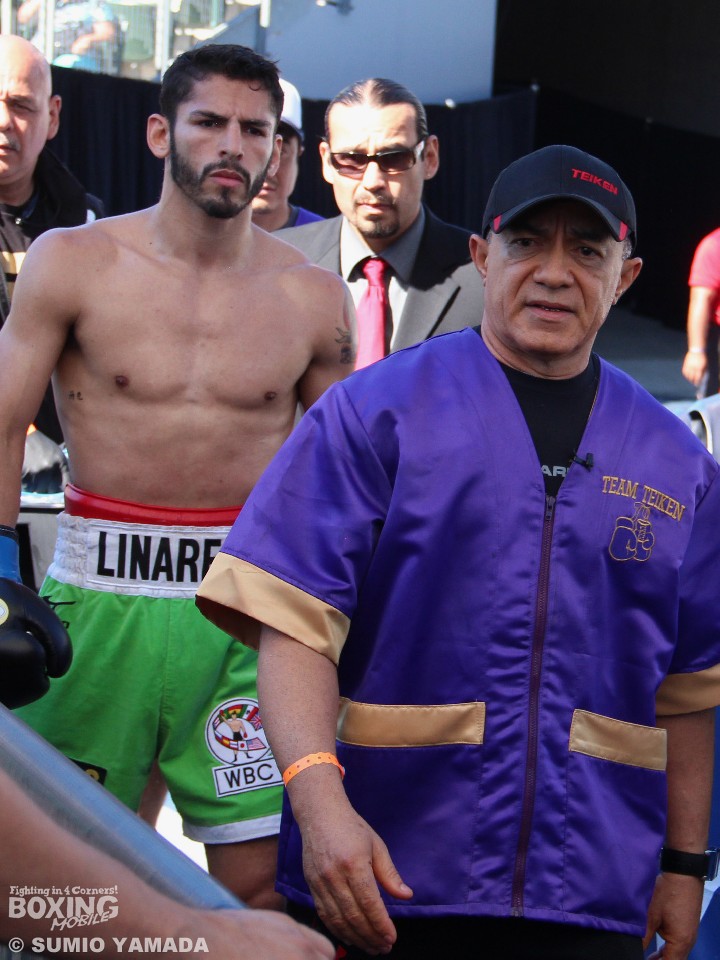 WBA王者のクロラは昨年11月に王座を獲得し、今年5月には暫定王者のイスマエル・バロッソ(ベネズエラ)を7回KOで下して初防衛を果たしている。これが2度目の防衛戦でもあるクロラは「土曜の夜にリナレスに勝つことで私はスーパースターになれる。(試合終了の)ゴングが鳴ったとき、ふたつのベルトがマンチェスターに残るはずだ」と自信をみせている。38戦31勝(13KO)4敗3分。勝ってWBCのダイヤモンド・ベルトとリング誌のベルトを腰に巻きたいリナレスは、バロッソの失敗を例に出して「私は12ラウンドを戦い抜く準備もしている」と判定勝負も視野に入れていることを明かした。そして、この試合を「故ヒルベルト・メンドサ前WBA会長に捧げる」とも話した。43戦40勝(27KO)3敗。オッズは8対5で地元のクロラ有利と出ている。