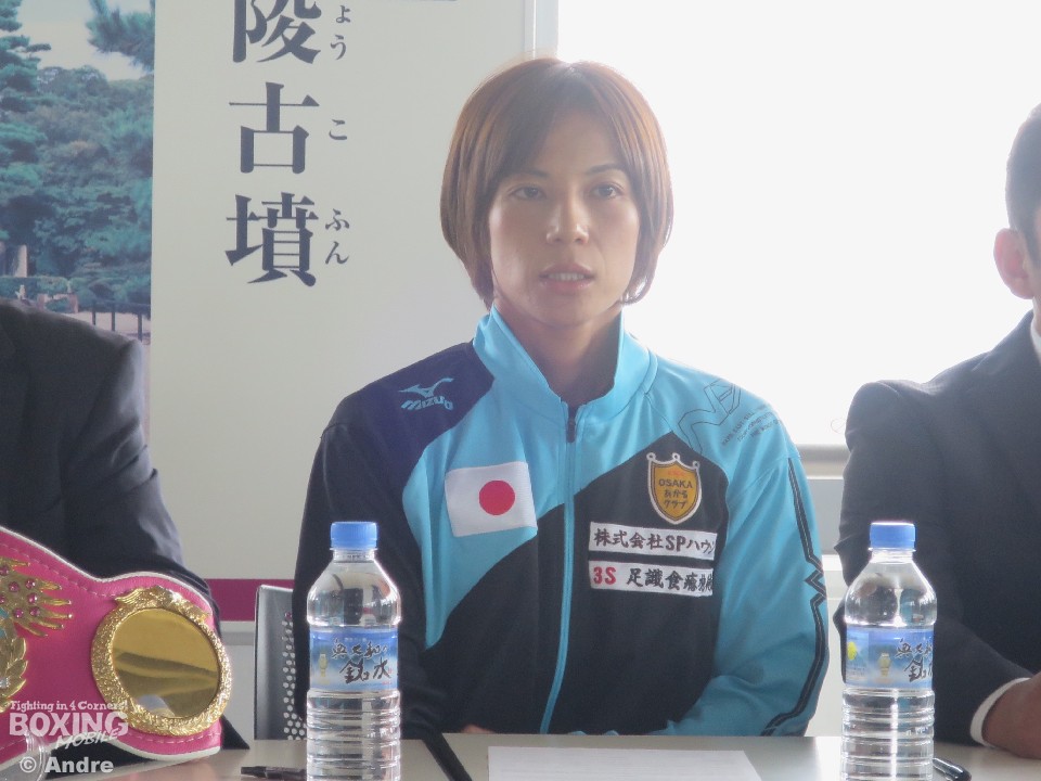 大阪府堺市内の堺市役所21階特設会場で8日、WBO世界女子フライ級王座決定戦に臨む元東洋太平洋ライトフライ級王者の好川菜々(38=堺東ミツキ)と前WBO世界女子ライトフライ級王者の李恩恵(33=韓国)が調印式と前日計量を行うために姿をみせた。調印式後の会見で両者は明日の健闘を誓った。