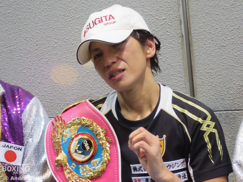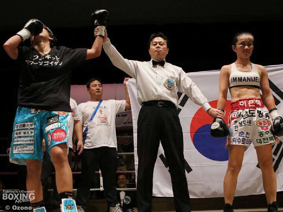 一方、悔しい敗戦となった李は「まずは好川選手におめでとうと言いたい。判定は仕方ないし、受け入れる。自分の全てを出し切れたのである程度の満足はある。彼女の細かいパンチを受けすぎたのが敗因。もう一度練習を頑張ります。日本の皆様ありがとう」と丁寧に話して会見を終えた。昨年ライトフライ級の世界王座に就いたが、防衛戦の機会に恵まれず、転級して今回の王座決定戦でリングに上がった韓国出身の実力者、李恩恵の再起にも期待したい。