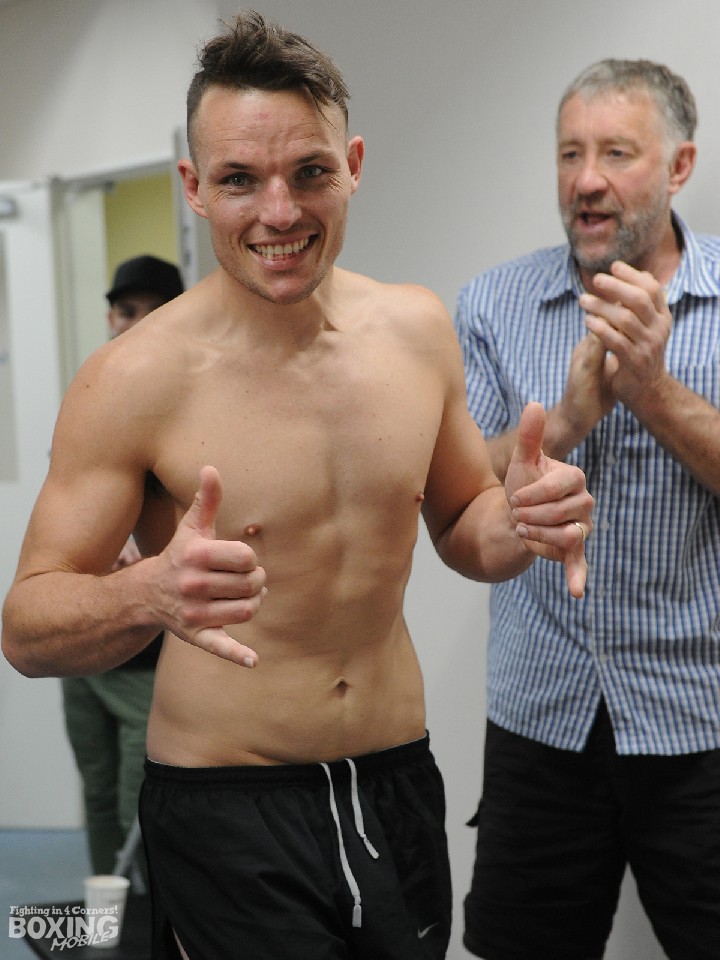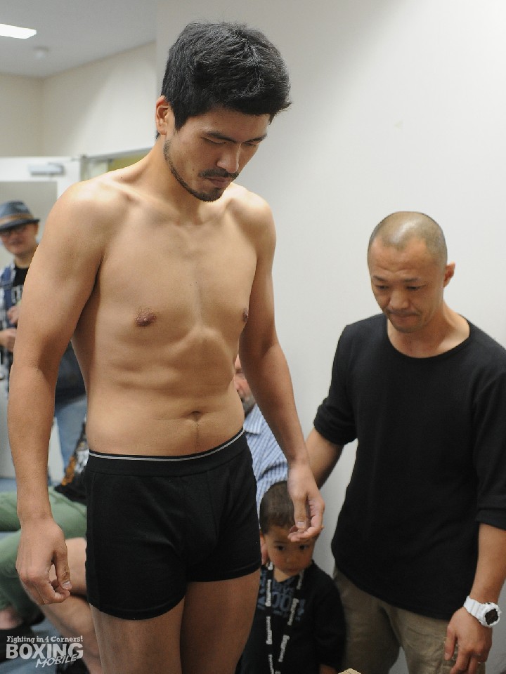 一方、国外での試合が初となる挑戦者は観光目的もあるのか、家族を引き連れて会場入り。松本と同じくリミットで秤を降りると「コンディションはグッド!」と上機嫌にサムアップし、明日のアタックに自信を示した。「松本はアゴが強くタフな印象。12ラウンドフルに打ち合うことを予想している。エキサイトな試合になるんじゃないかな。もちろん勝つのは自分さ!」。