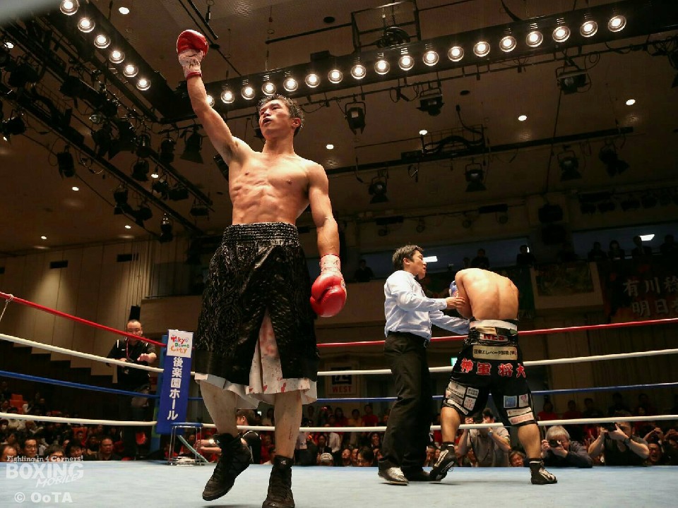 初防衛をはたした有川は「大川さんに借りを返すつもりだったので防衛するという感じではなかった。この3年でどれだけ成長したか試される意味ではプレッシャーはあった」と安堵の表情。「今回はジャブが当たって真正面に立ってくれたのでやりやすかった」と試合を振り返ったが「ジャブの後に右がくるのはわかっていたのにテンプルにもらってしまった。腰を落としたので効いてはいたが手は突いていない気がした。でも逆に休めて良かった」と苦笑いを浮かべた。「今日みたいなやり方だと坂本さんはパンチがあるので前みたいに倒されるので気を付けたい」と来年のチャンピオンカーニバルで対戦する予定で、かつて初回KO負けを喫している同級1位の坂本大輔(32=角海老宝石)を警戒した。さらに試合前に挑戦状を持ってきたデビュー14戦全勝全KOの「九州のタイソン」こと同級8位の別府優樹(25=久留米櫛間)との対戦はとの問いに「ちょうど良い時期に僕がチャンピオンになったのでずっとやってみたいと思っている。次の試合をクリアできたら」と目を輝かせた。