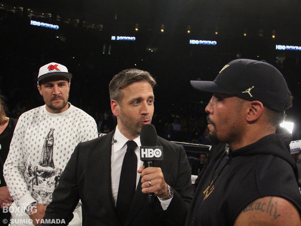 最初に秤に載ったウォードは175ポンド(約79.3キロ)のライトヘビー級リミットちょうどだった。続いて短パンを穿いたまま計量に臨んだコバレフも同じく175ポンドだった。無表情だったウォードとは異なり、コバレフは笑みを浮かべてポーズをとった。続いて行われたフェイスオフでは40秒ほど睨み合ったが、どちらかが挑発することもなく、関係者に引き離されて何ごともなく終わった。コバレフは31戦30勝(26KO)1分。2階級制覇を狙う元WBA、WBC世界スーパーミドル級王者のウォードは30戦全勝(15KO)。オッズは6対5でわずかにウォード有利と出ている。