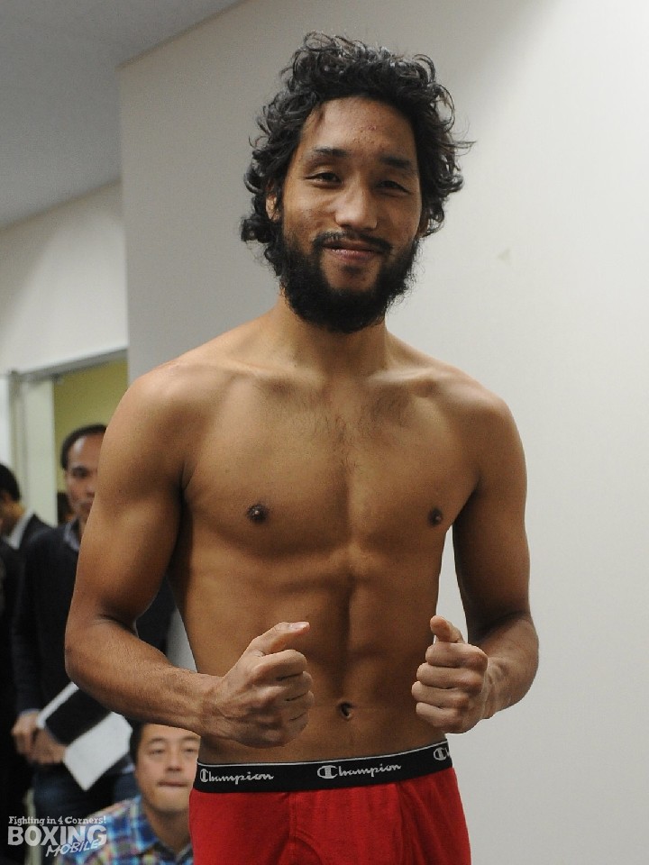 これが3度目の防衛戦となる尾川は100gアンダーの58.8kgでクリア。「特に気負いはない。国内を卒業できる良いチャンスだと思う。決められた試合をするのが僕の使命」と落ち着いた表情を見せた。「前回(内藤選手と)戦った時はタイトルを獲りたいと大切にいき過ぎた。それも経験となったので、今回は落ち着いてできる。相手はパンチを避けるのが上手いが、攻撃力がないので自信をもって前に行ける」と内藤の印象を語った尾川。「判定でもいいが、チャンスがあればお客さんの期待(ノックアウト)に応えたい。この試合に勝って世界へのステップアップとしていきたい」と意気込んだ。