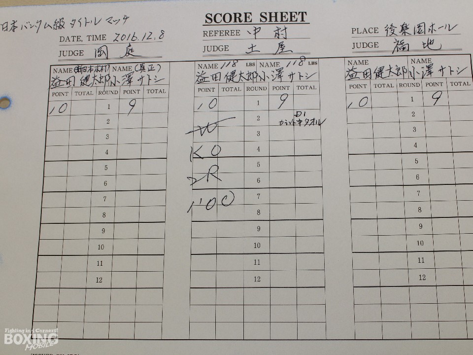 一方、タイトル獲得に失敗した小澤は痛めた右目に眼帯をして会見に応じた。「気が付いたら手を突いていた。テンポが速くて読めなかった。ガードの上からなので大丈夫だと思ったが…、力を出す前に負けたがこれも実力。後楽園ホールの雰囲気は最高でした」と潔く完敗を認めていた。