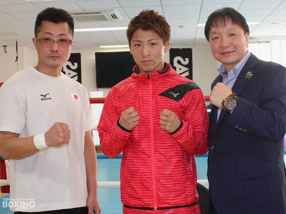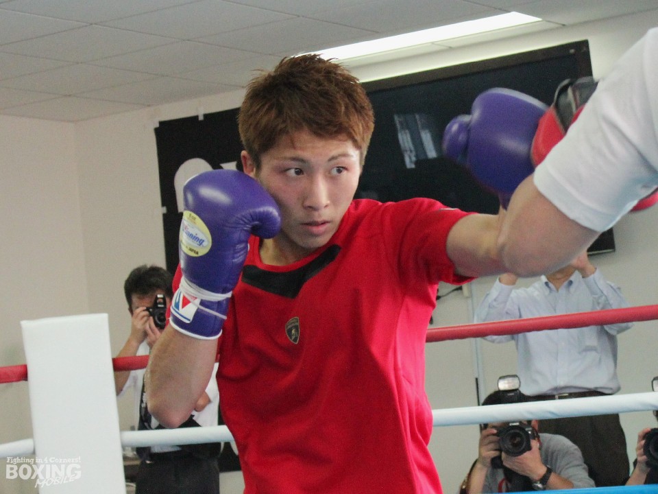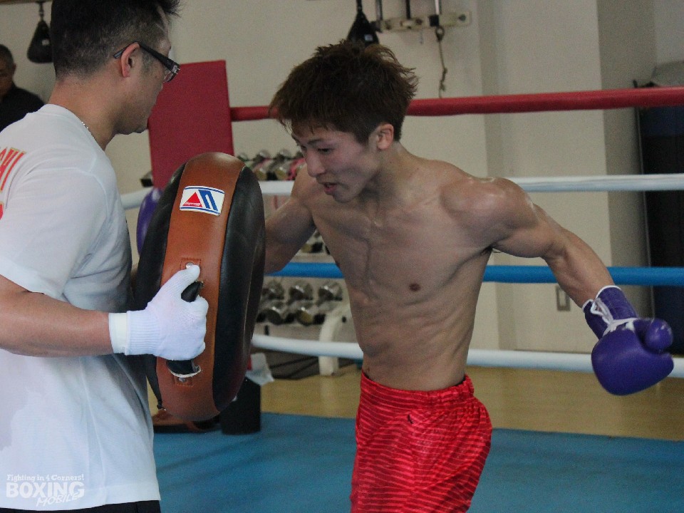 この日は通常のミット打ち5ラウンド、ドラム型のミット打ち4ラウンドなど約1時間の軽めのトレーニングだったが、父親の持つミットにワンツーに加えアッパー系のパンチも打ち込んでいた。アッパーに関して「前に出てくる河野対策か」と聞かれると、井上は手の内を隠そうとせずに「もちろんです」と即答。そこに揺るぎない自信が感じられた。明日20日は河野が公開練習に臨むことになっており、スーパーフライ級の日本人対決はいよいよ決戦ムードが高まってきた。