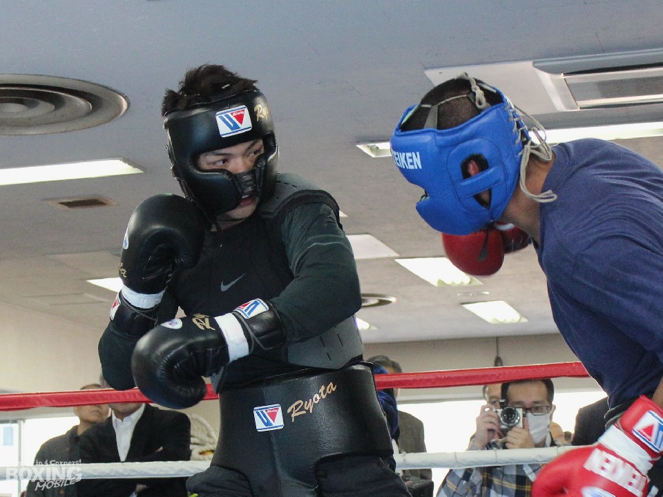 この日はミット打ちやサンドバッグ打ちのほかに2ラウンドのスパーリングを披露。パートナーは14年9月に対戦して10回判定勝ちを収めたときの相手、アドリアン・ルナ(メキシコ)だったが、村田は肩越しの右ストレートでルナをのけぞらせたり、ワンツーに加え左フックの返しを繰り出すなど好調を感じさせる出来だった。スパーを終えたルナは「私が戦ったときよりも村田は強く、速くなっている。コンビネーションの組み合わせも多いので、7ラウンドか8ラウンドぐらいで倒してしまうと思う」と、村田のKO勝ちを予想した。