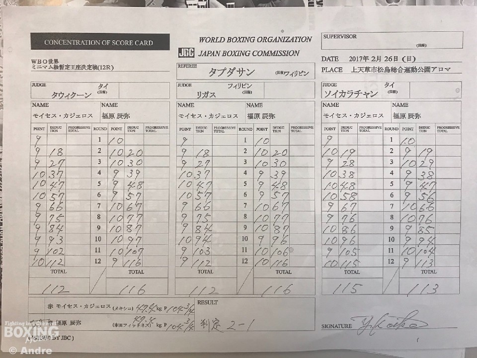 WBO世界ミニマム級暫定王者決定戦が26日、熊本県上天草市で開催された。ランキング1位のモイセス・カジェロス(メキシコ)と拳を交えたのは、ランキング2位で熊本県出身の福原辰弥(本田F)。熊本県内でボクシングの世界戦が開催されたのは34年ぶり。熊本県下のジムから世界チャンピオンが誕生するのは初めてのこと。会場には2500人の地元ファンが集まった。