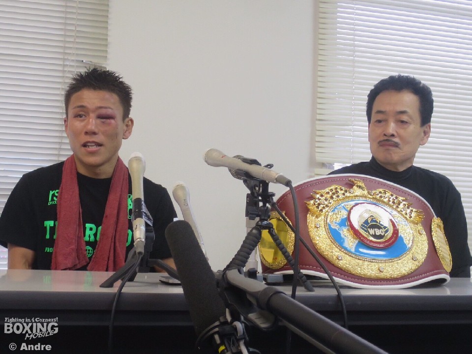一方、悔しい敗戦となったカジェロスは「フクハラは強い選手だったが、判定には納得いかない」と、僅差判定負けに悔しさを隠しきれなかった。「前半で(福原は)ボディが効いていたので、倒しに行ったが彼は復活してきた。また、世界チャンピオンを目指した頑張るだけだ」と力なく会見を終えた。