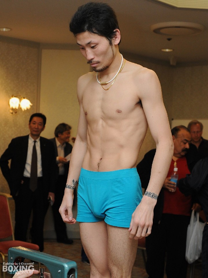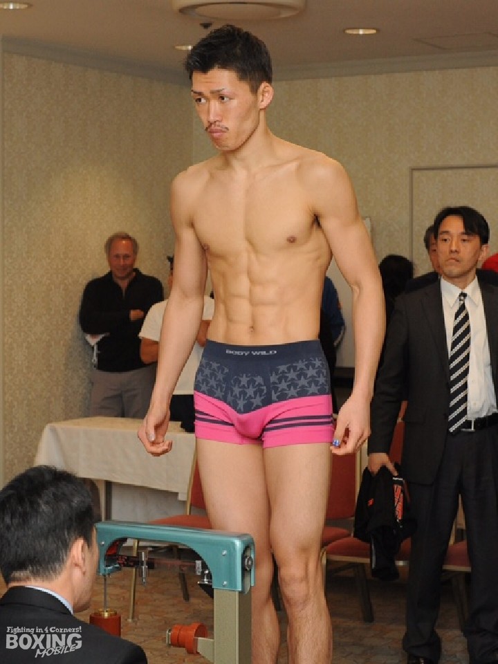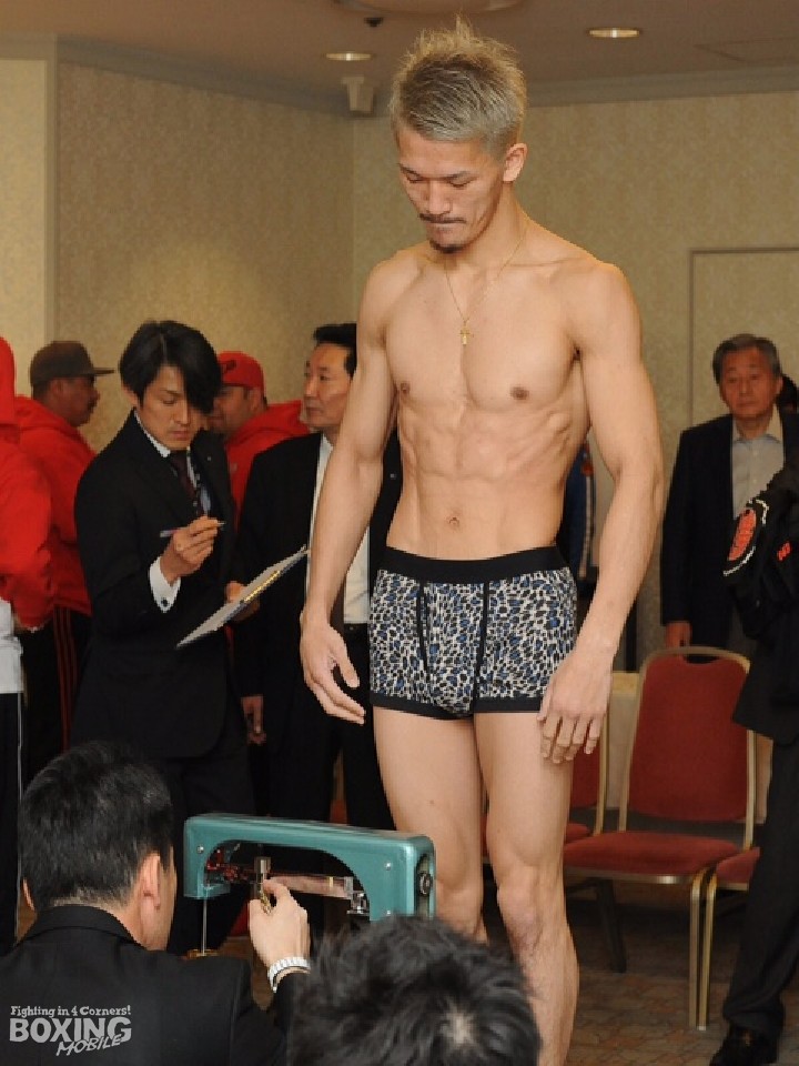 これが世界前哨戦となるIBF世界同級3位の岩佐亮佑(27=セレス)はグレン・メドゥラ(21=フィリピン)と124lb(約56.2kg)契約8回戦で対戦。岩佐は56.1kg、メドゥラは55.9kgで計量を終えた。
