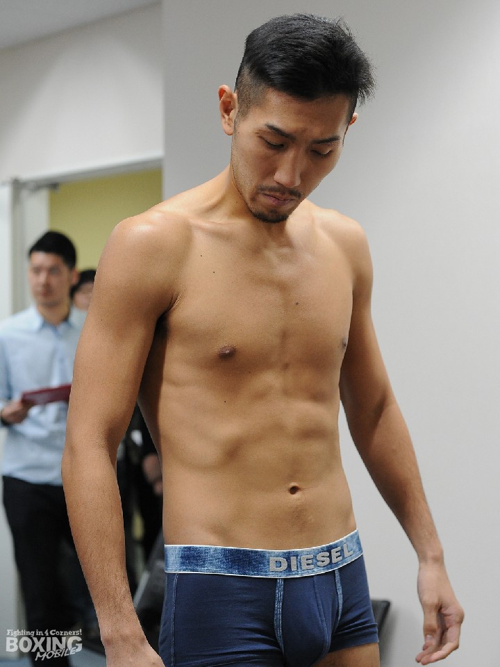 また、セミでフィリピン人選手を相手に65.0s契約8回戦を行う前日本スーパーライト級王者の岡田博喜(27=角海老宝石)は、リミットで秤を降りると「いつもより上の体重でやるのでストレスがなく、心身ともにバッチリ。痛めていた拳も安心して打てるようになった」とリラックスした様子。次のステップとして年内のアジア地域タイトル獲得を目指すと話し、「倒すことは意識していないが、最低でもストップできれば。圧倒して勝ちますよ」と意気込んだ。
