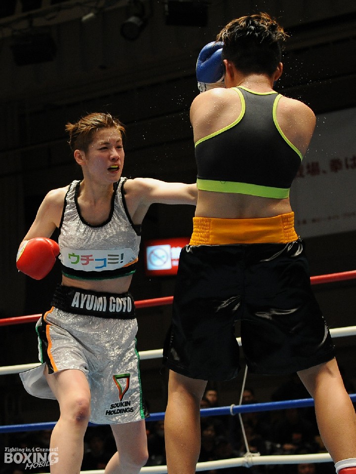 15日、後楽園ホールで開催された女子イベント「第4回DANGAN-LADIES」のメインでOPBF東洋太平洋女子スーパーバンタム級王座決定戦が行われ、同級1位の後藤あゆみ(28=ワタナベ)と同級2位キム・アクタブ(24=比)が激突した。5戦全勝4KOで初のタイトル戦を迎えた長身サウスポーの後藤は立ち上がり、左右を振り回すアクタブに対し、長いリーチを活かしての左ストレートを当てたが、相手の強烈な踏み込みに後が続かず。思わぬ苦戦を強いられた。