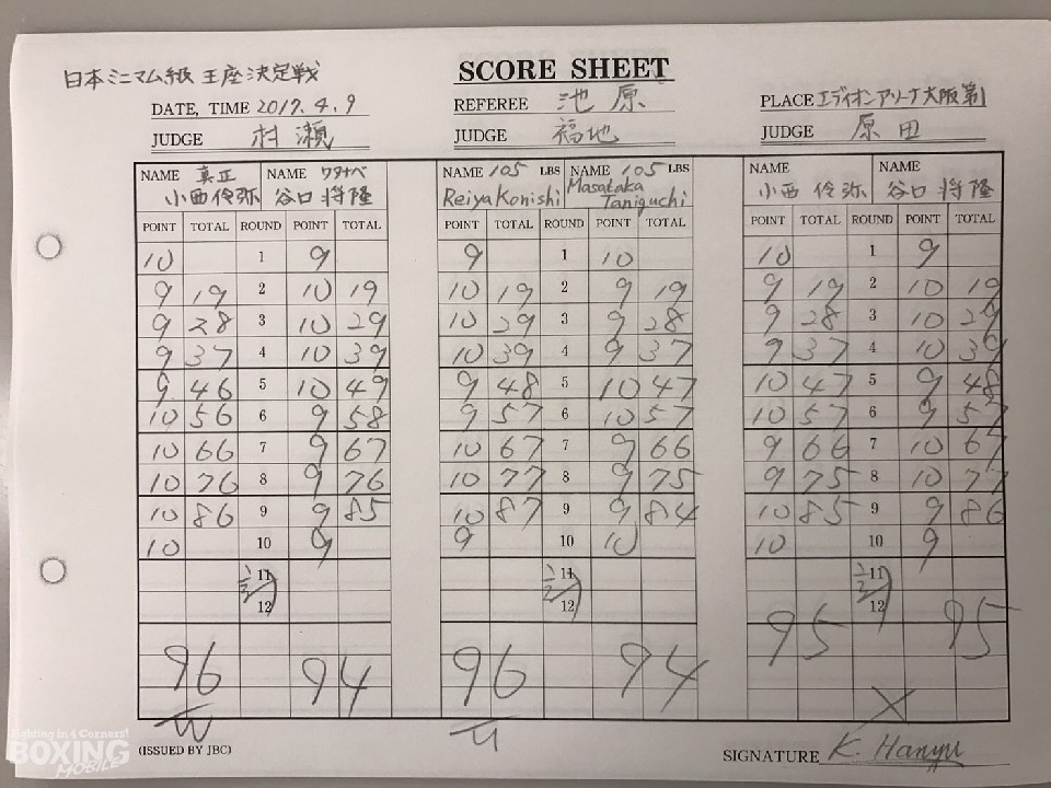 日本ミニマム級王座決定戦が9日、世界戦のアンダーカードとして行われた。ランキング1位の小西伶弥(真正)と2位の谷口将隆(ワタナベ)による頂上決戦。注目の大一番を終えた両者とリングサイドの声を拾った。