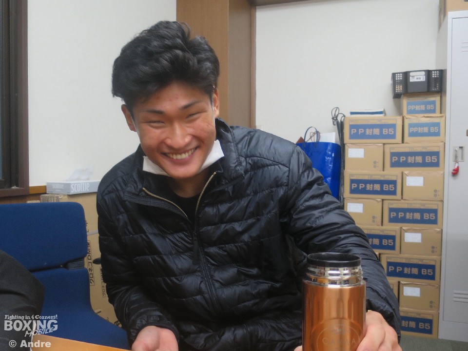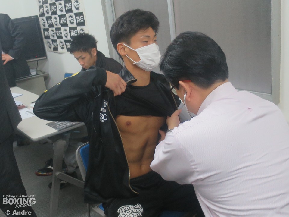 最初にチャンピオンの太尊が秤に乗り72.5kgのリミットでパス。「とりあえず、武市(晃輔)トレーナーとやってきた練習を、出せるようにするだけですね。築き上げているボクシングの過程ですけど、きっちりとチャンピオンらしく勝つだけです」と、すっぽんスープを飲み干した。