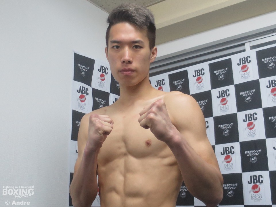 東洋太平洋ミドル級チャンピオンの太尊康輝(六島)が15日、前日計量を行うため日本ボクシングコミッション関西事務局に姿をみせた。明日、大阪市内の住吉区民センターで、同級11位のアン・サンジェ(韓国)を挑戦者に迎えて、初防衛戦のリングに上がる。