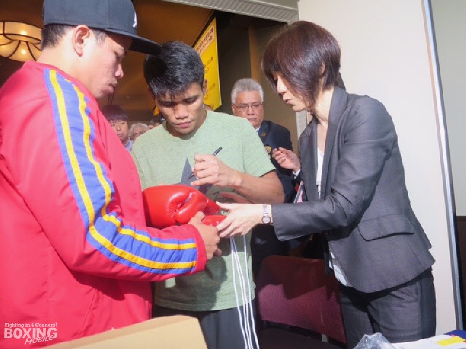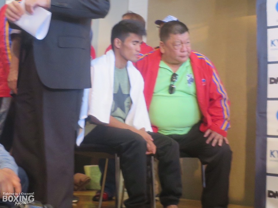調印式は前日計量の後に行われたため、1回目の計量で体重超過したチャンピオンのタパレスは、再計量の準備のために会場を出た。そのため挑戦者陣営とチャンピオン陣営は世界戦の発表会見には同席できなかった。