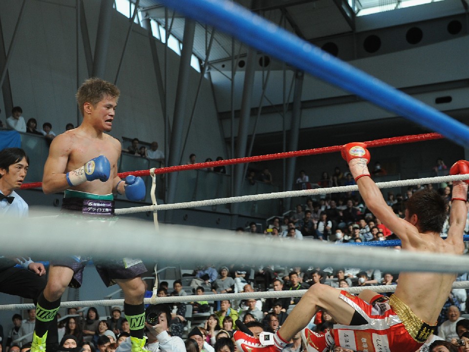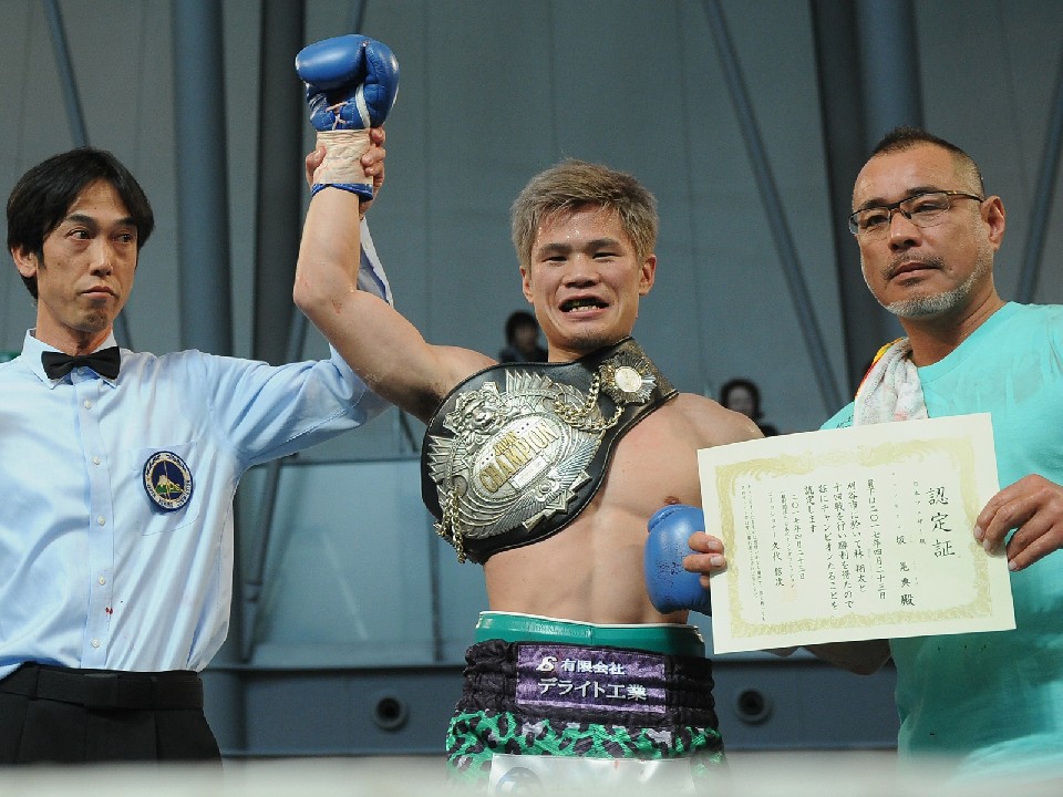 タイムは3ラウンド2分50秒。タイトル初挑戦の坂が評判通りの力強さを発揮し、TKO勝ちで新チャンピオンに輝いた。リング上で「チャンピオンやで〜!」と叫び、誇らしげにベルトを巻いた坂は、控室に戻ると「試合前は尊敬する林選手に勝てるのか不安でしたが、このベルトが答え。真剣の切合では僕のほうが上だった。本当に嬉しい!ここを到達点と思わずに一戦一戦やっていきます」と更なる飛躍を誓い、大阪から駆けつけた応援団と喜びを分かち合った。