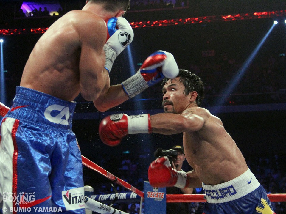 パッキャオは「試合の予想はしないが、ファンを楽しませるためにベストを尽くす。ここで戦うことができるので興奮している。試合が待ちきれないよ」と話した。パッキャオ自身はホーンに関して知識が乏しいらしく、「彼については分からないけれど、ファイターであることは知っている」といい、今週中に映像をチェックするつもりだと明かしている。挑戦者に対しては「一生懸命にトレーニングして100%のコンディションで最高の試合をしよう」とメッセージを送った。当日はサンコープ・スタジアムが5万5000人の大観衆で埋まることが確実視されている。戦績はサウスポーのパッキャオが67戦59勝(38KO)6敗2分、ホーンが17戦16勝(11KO)1分。オッズは7対1でパッキャオ有利と出ている。