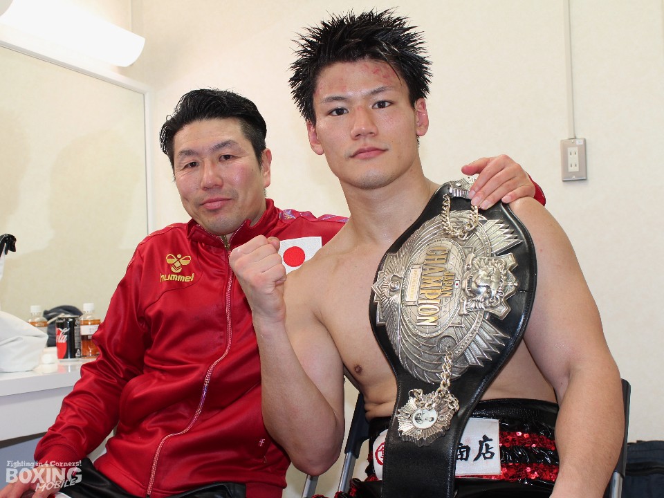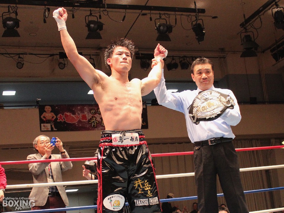 11戦目でベルトを巻いた井上は「ガードを固めていったらパンチを防ぐことができた。体の力は自分の方が上だった。序盤は動きが固かったが、セコンドの指示を聞くことができ良くなってきた。相手が左ボディを嫌がっているのがわかった。同じ高校だった岡田(岡田博喜=前日本スーパーライト級王者)のように日本チャンピオンになることができて、やっとここまでこれたという思いが強い」と感無量の表情。前王者の野中悠樹(井岡弘樹)の返上により、急遽王座決定戦のチャンスが回ってきた井上は「試合まで1ヶ月半と短い期間だったが、アルバイトを休ませてもらい、おかげで試合への気持ちを作ることができた」と声を弾ませた。「これからは距離を取って落ち着いたボクシングで、1ランク上を目指していきたい」とさらなる飛躍を誓った。