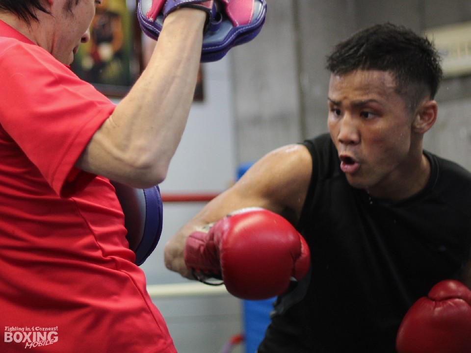 スパー後は1ラウンドのミット打ち、パンチングボールで大粒の汗を流した比嘉。エルナンデスの強さを分析した野木丈司トレーナーは「相手は足の使い方が優れている。遠い距離からのアッパーと傍目にはわかりにくいフェイントを使って崩してくる」と警戒した。ミット打ちではアッパー対策に時間を費やした。