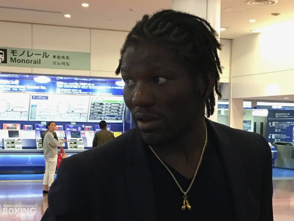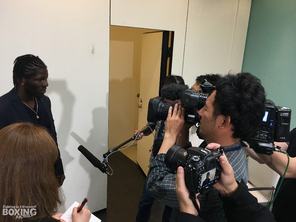 18人兄弟の7番目というカメルーン(※一夫多妻制)出身のフランス国籍。アマ時代にトレーニングで訪れたキューバの選手達からは"フェノメノ=※スッゲーヤツ"と呼ばれている2児のパパは、末っ子で4歳の長男に「村田を倒してきてね」というエールで見送られたという。普段は穏やかな性格と自身を分析するトップコンテンダーも「リングではライオンになる。勝つ自信は100%」。10時間以上かかった長旅にも疲れを見せず、時折笑顔を見せながら丁寧に記者の質問に答えた。