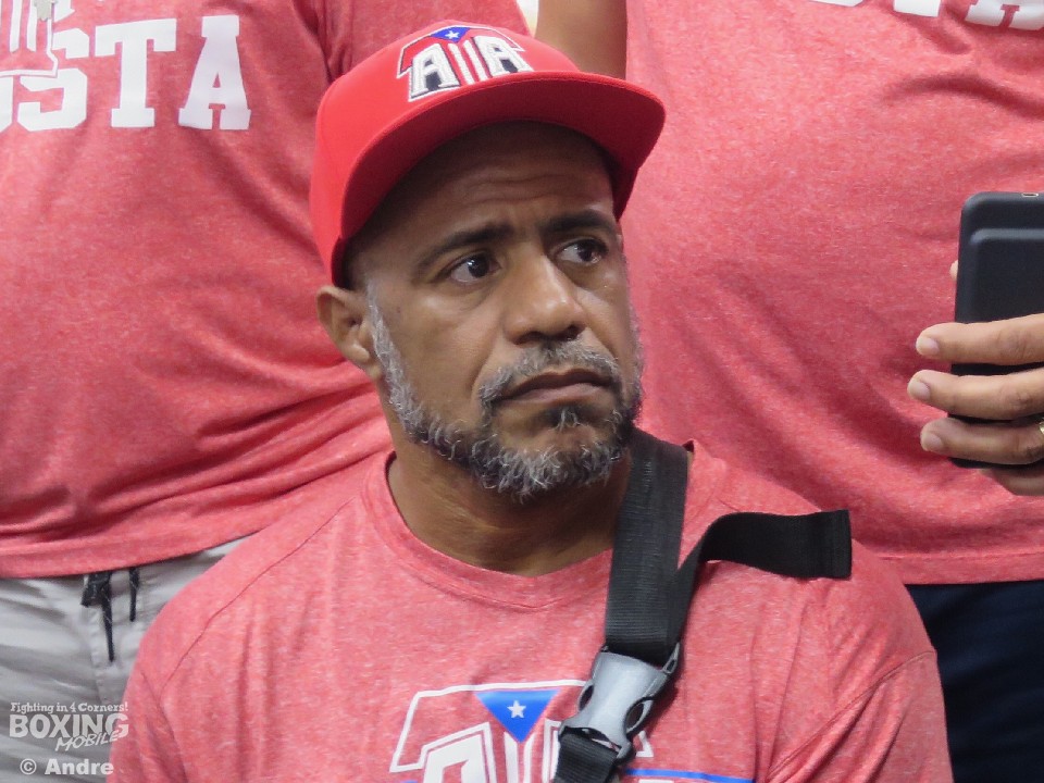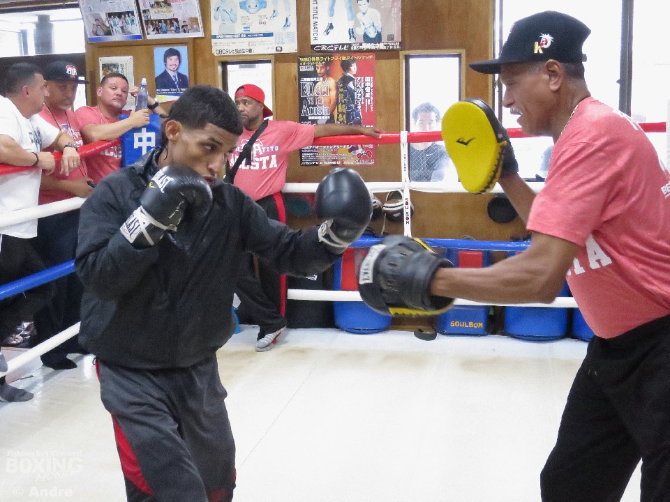 練習では、サウナスーツに着替えると10分間、独特なリズムでロープを飛び汗を出すと、鏡を凝視しながらシャドーで同じく10分間フォームをチェック。その後、ミット打ちを5ラウンドこなし、さらにロープを5分飛び、練習は終了。約1時間半、しっかりと汗を流した。来日3週間前からプエルトリコと日本の時差13時間を考え、昼夜逆転した生活を送っていたアコスタは「時差ボケは全くない」と、時差対策も計画的に進めていると明かした。