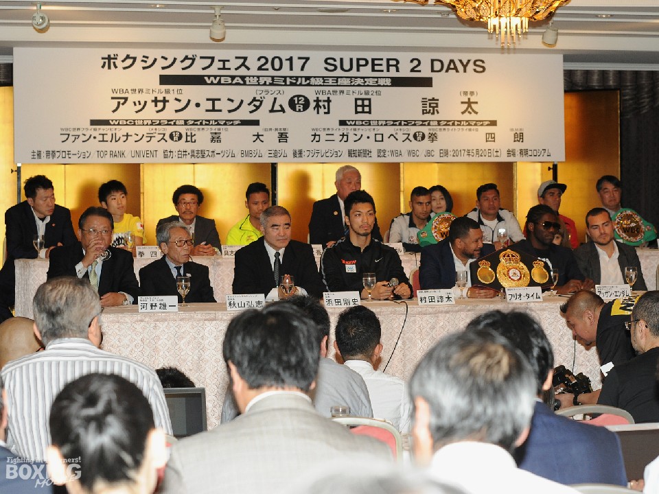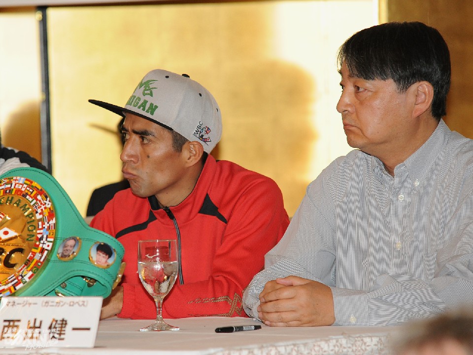 会見では前段に村田諒太(帝拳)やアッサン・エンダム(カメルーン/仏)ら9人が並び、後段には比嘉大吾(白井・具志堅)やファン・エルナンデス(メキシコ)、拳四朗らとともにロペスも並んだ。そのサウスポーの王者はサングラスをかけたまま会見に臨み、「やるべきことはすべてメキシコでやってきた。世界チャンピオンがどういうものかを試合で披露したい。若い相手とは何度も戦った経験がある。チャンピオンとしてメキシコに帰るつもりだ」と自信をみせた。