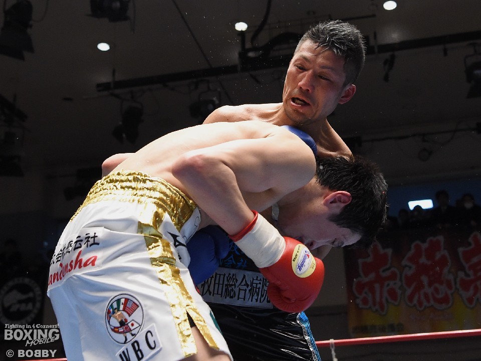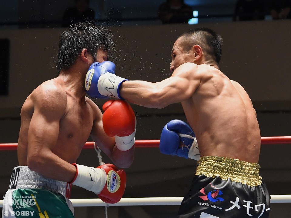 一方、09年に日本バンタム級王者の大場浩平に敗れて以来、8年ぶり2度目のタイトル挑戦となる臼井は、11年から約3年間のブランクを作るも、復帰後は5連勝を飾り日本とOPBFランキングに復活。今年3月の前戦こそ階級上の元日本、OPBFタイトルホルダーの天笠尚(山上)に小差判定で敗れたが、5回にダウンを奪われて以降は追い上げるなど善戦。37歳にしても衰えぬ機動力と、15年のキャリアで積み重ねた老獪さを発揮した。