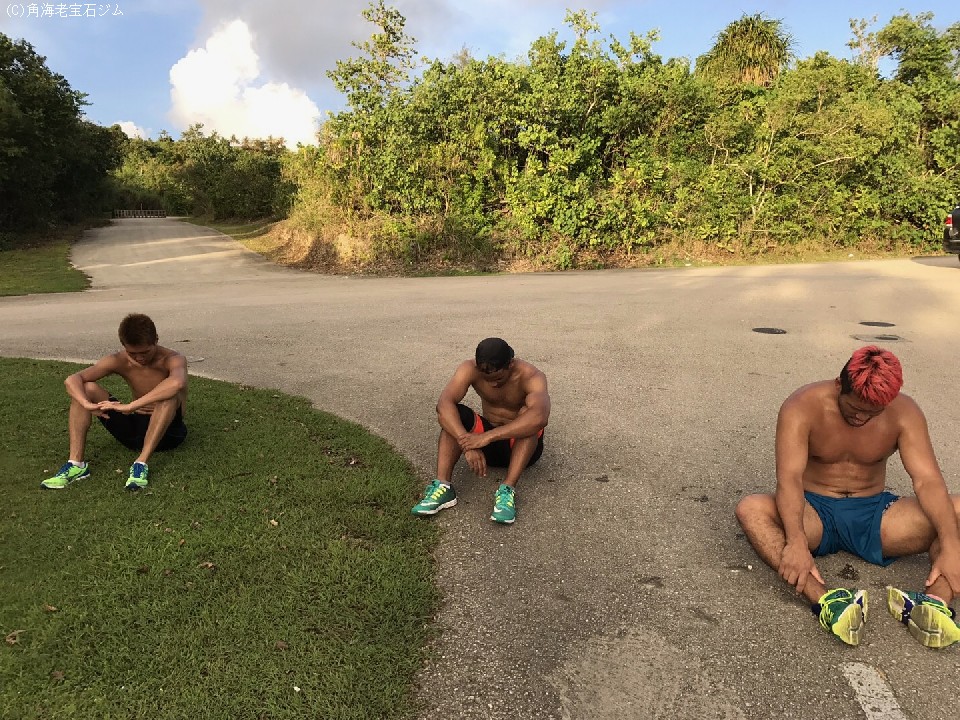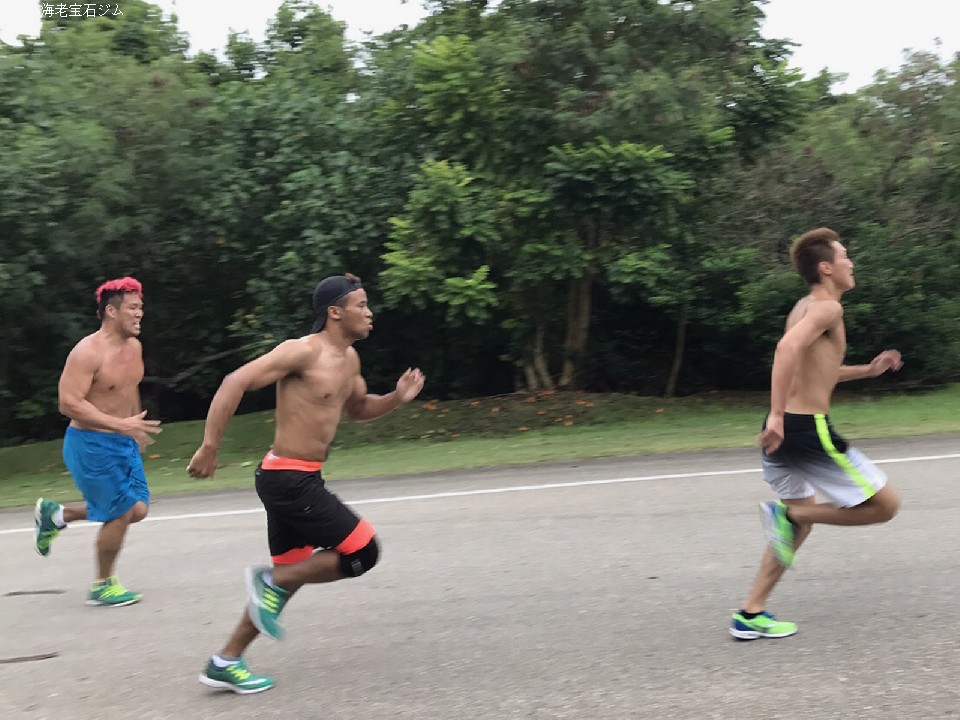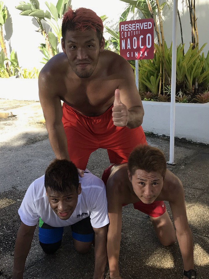 角海老宝石ジムの主力選手、IBF世界スーパーバンタム級王者の小國以載(29)と日本・アジア地域ヘビー級3冠王者の藤本京太郎(31)、そしてスーパールーキー斎藤一貴(24)の3人が、16日から夏真っ盛りのグアムで強化合宿を敢行中。朝はホテルの周りを中心に15qのランニング、夕方は坂道ダッシュを中心とした走り込みで足腰を鍛え、来たるべき戦いに向け準備を進めている。