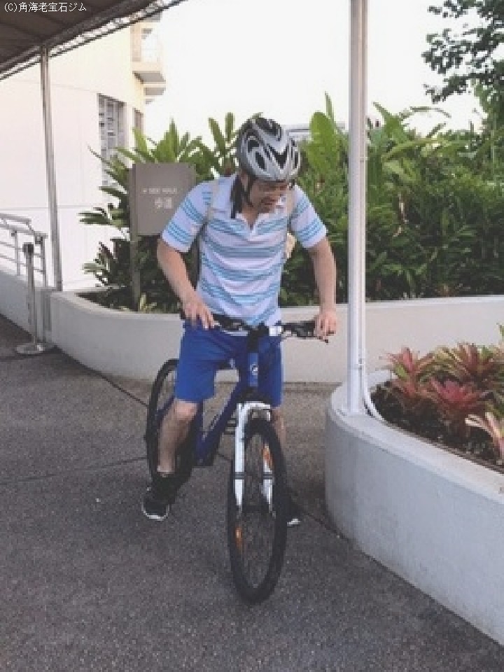 自転車でついていく小堀トレーナー35歳