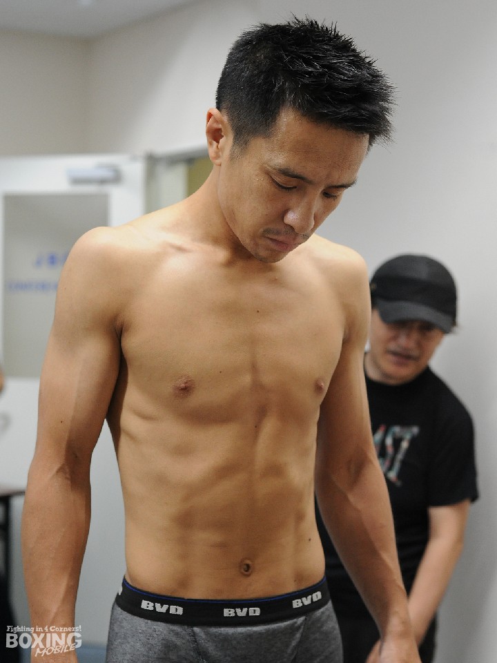 昨年7月、満を持して臨んだIBF世界スーパーバンタム級王座決定戦でジョナタン・グスマン(ドミニカ共和国)に11回TKOで敗れた元OPBF東洋太平洋同級王者の和氣慎吾(29=フレア山上)が、19日の後楽園ホールでリングに帰ってくる。試合前日の18日、和氣は同じく13ヵ月ぶりに復帰する元日本同級暫定王者の瀬藤幹人(37=協栄)と都内の日本ボクシングコミッションでの計量に臨み、和氣はスーパーバンタム級リミット(55.3s)を100g下回る55.2kg、瀬藤が55.0kgでクリア。ともに負けられない再起戦に向け意気込みを語った。