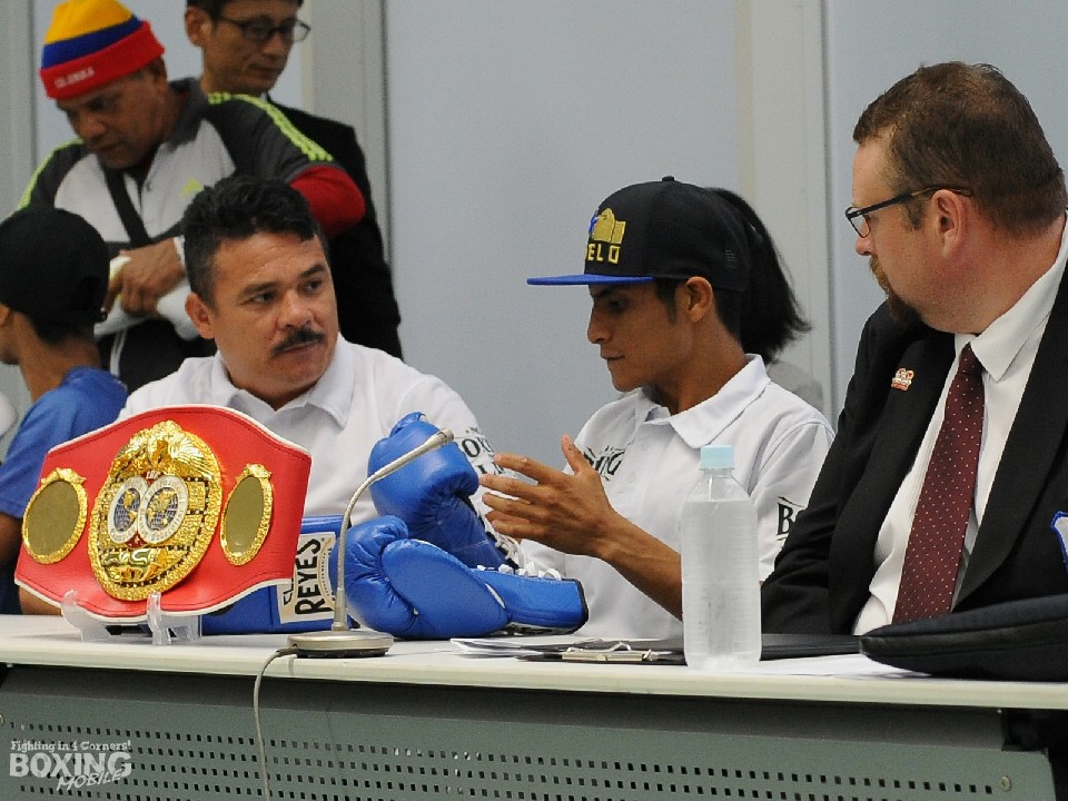 明日23日に東京・大田区総合体育館でゴングが鳴るIBF(国際ボクシング連盟)ミニマム級タイトルマッチの調印式と会見、前日計量が22日、同体育館で行われた。今回が2度目の来日となる24戦20勝(12KO)3敗1分の王者ホセ・アルグメド(28=メキシコ)は、破壊力のある挑戦者を迎えてのV4戦に「準備万端で日本に来た。メキシカンらしい試合を見せる。自信は100%ある」とアピール。これに対しデビューから1年3ヵ月、8戦目での世界タイトル獲得を目指す同級9位の京口紘人(23=ワタナベ)は、「打ち勝って夢を叶える。理想はKO」と気合いを入れた。