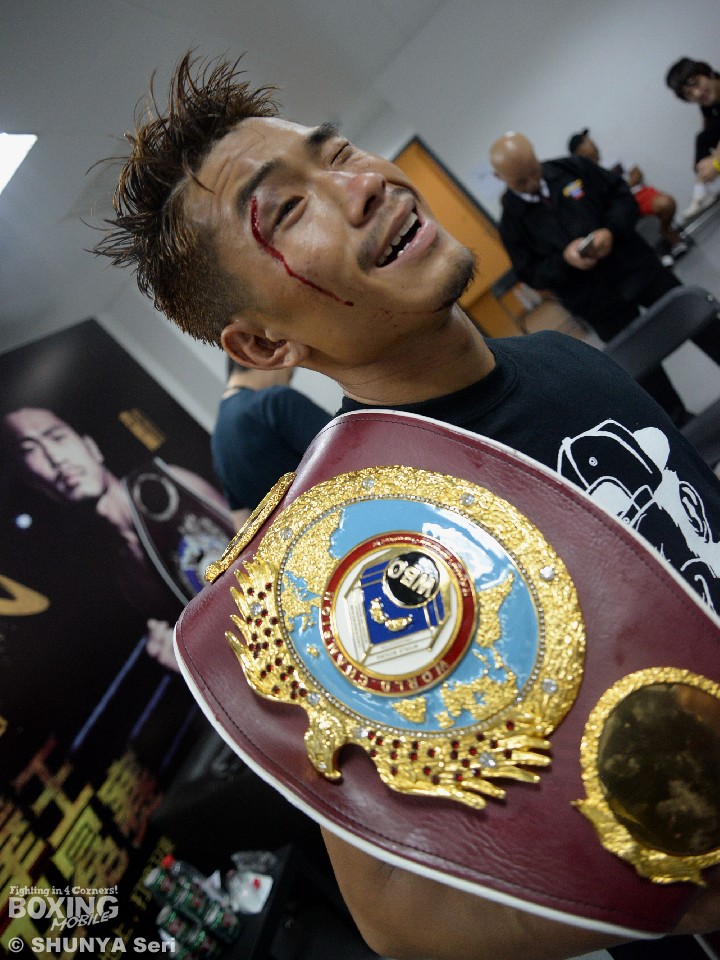 当の木村はこの勝利の喜びについて「あまり実感が湧いてこない」とごもっともなコメント。目尻の傷にはやはり大きな危機意識を持っていたようで、応援に駆けつけた青木ジム関係者たちと記念撮影を続ける間も出血を気にしていた。試合の後半になってから、ようやく功を奏し始めたボディ攻めについては「もっと連打したり、顔までつなげるイメージを持って練習してきたけど、とにかくチャンピオンは距離感がよくて当たらないので追撃しきれなかった。ただ、今日勝つためにハードトレーニングを積んできたので、スタミナには余裕があった」と話している。